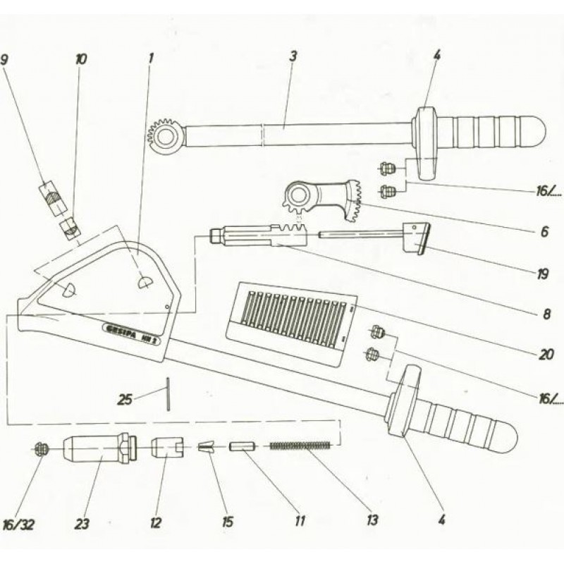 Надійна і функціональна модель з зубчатою передачею, професійний інструмент для дрібних монтажних робіт. Виконаний в литому корпусі з високоякісного алюмінію, конструкція стабільна, має захисне покриття від забруднень. Палець шарніру розташований на опорі із захистом від провертання і розташованим всередині осьовим фіксатором, що не зношується і легко ходить.